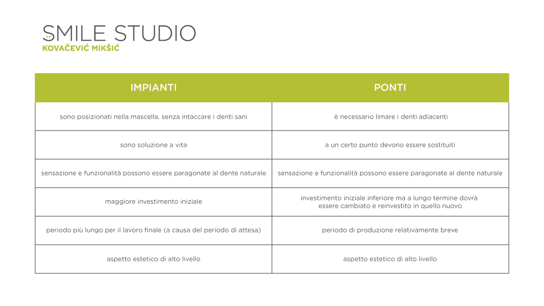Il confronto di impianti e ponti in caso di mancanza di un dente:
